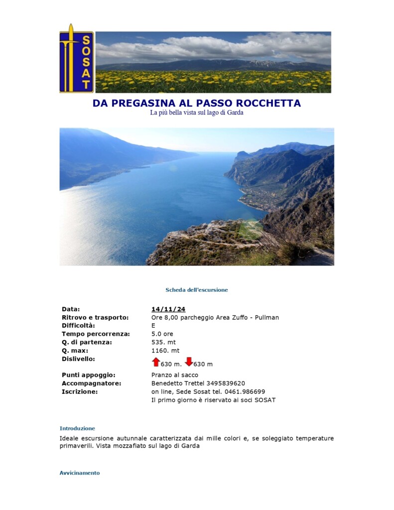 Giovedì 14 novembre 2024: Da Pregasina al Passo Rocchetta