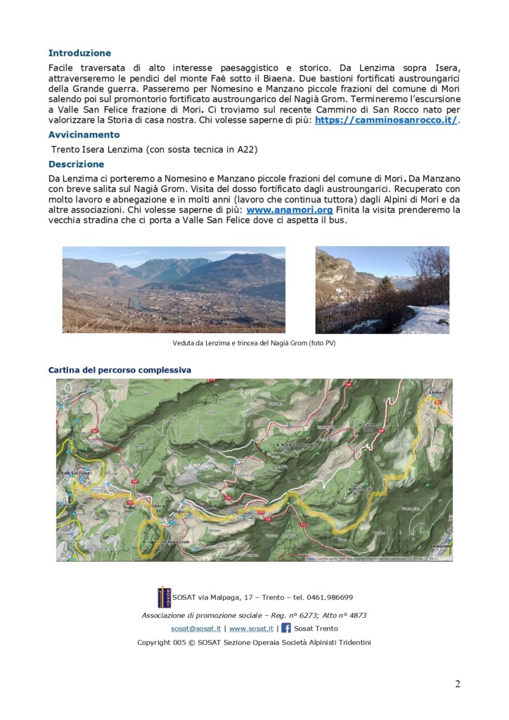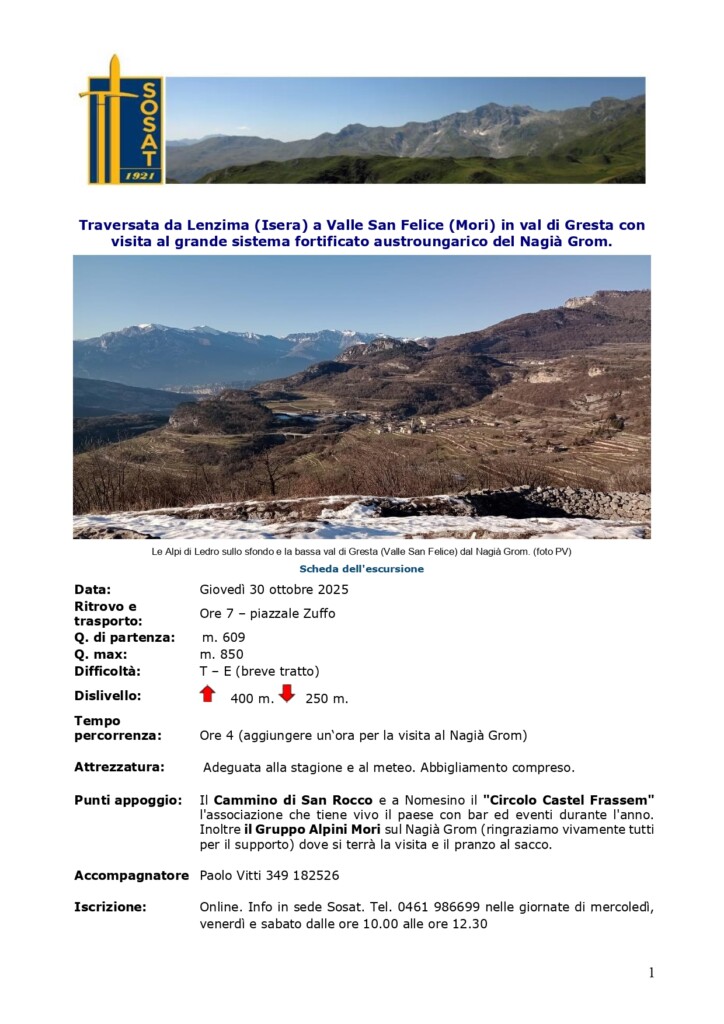 giovedì 30 ottobre 2025: traversata da Lenzima (Isera) a Valle San Felice (Mori) in val di Gresta con visita al grande sistema fortificato austroungarico del Nagià Grom.